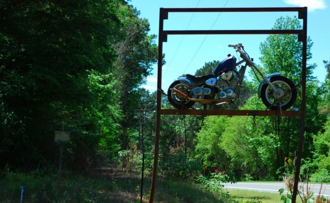 More notable is the full-size motorcycle on an old sign that I believe used to advertise the now defunct Hog Wild Saloon.  Whether you’re looking for ambiance, adventure or just plain old quirkiness this alone sets the tone.