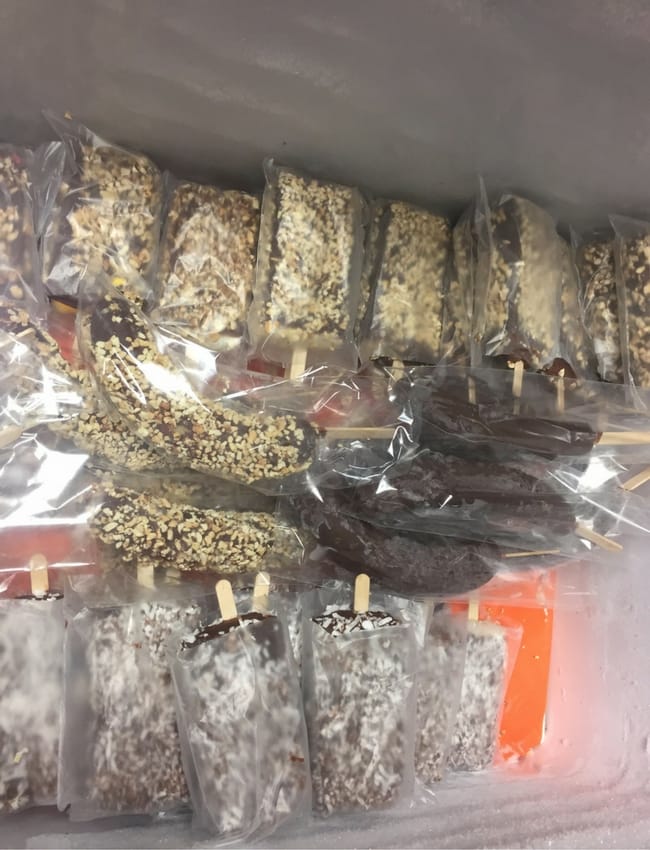 Next to the paletas are more frozen treats. This case is everything chocolate dipped! They dip some of the paletas in chocolate and roll them in nuts or coconut, but the local favorites are the frozen chocolate dipped bananas!