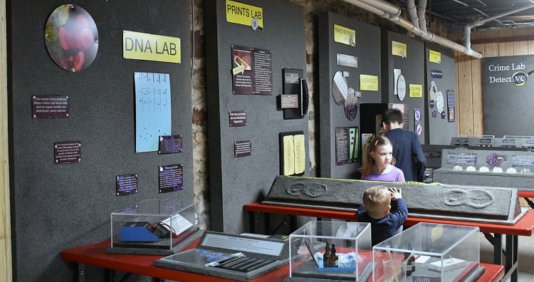 Guests can walk through the discovery processes, learn about DNA and blood samples, trace evidence and even discover that footprints are like fingerprints: no two are identical. They can reason on the evidence, use the process of elimination and help solve the crime.
