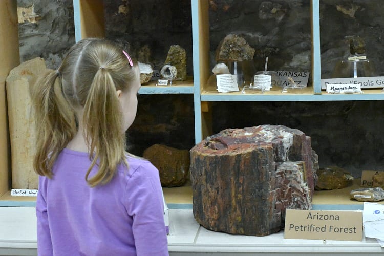 The museum has an impressive rock and fossil collection. Want to experience a small part of the Petrified Forest National Park in Arizona? View and touch a piece of the colorful petrified wood. It’s remarkable to see all the beautiful minerals found on our planet.