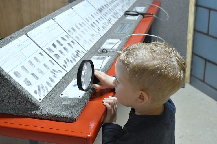 Even the youngest in our group couldn’t help but be excited to explore alongside older siblings. What child doesn’t enjoy using a magnifying glass to examine fingerprints?