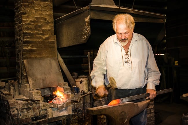 However, in Historic Washington State Park, Arkansas knife making is alive and well. A replica of James Black’s blacksmith shop stands on the grounds. It was constructed by the Pioneer Washington Restoration Foundation in 1960, and visitors can see working forges and knife making.