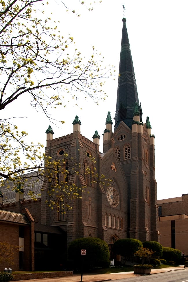 St. Andrew’s Cathedral in Little Rock is one of the most impressive symbols of Catholicism in Arkansas. The building we see today was constructed entirely from granite in 1887, and at one point the bishop ordered construction on its steeple halted to wait for the Masonic Temple to be completed. His goal? To make sure that St. Andrew’s steeple was taller. The building’s style is English Gothic, and its stained-glass windows came from the New York office of Mayer of Munich. Most of these windows were damaged in 1950 during a tornado, along with a 900-pound cross that fell from the roof. The Sisters of Mercy oversaw a Catholic school across the street, which was eventually relocated to the Heights area, which is still currently in operation as Mount St. Mary Academy. St. Andrew’s Cathedral was listed on the National Register of Historic Places in 1986.