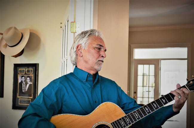 Today, Jeff and his wife Carole occasionally host what we southerners call pickin’ and singin’ gatherings in their beautiful home. Jeff’s guitars and other instruments hang in a music room in their home along with a photo of Marty Robbins.