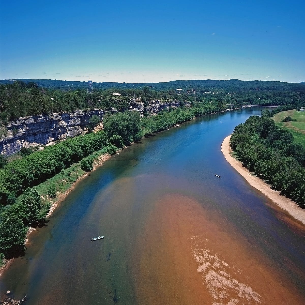 I was around the age of 13 when my family and I drove to Calico Rock one afternoon. Winter was in our rearview mirror, forsythia bushes were in bloom, and I suspect my parents desperately wanted to get out of the house after a cold season spent indoors with three children. There was a restaurant in Calico Rock that Dad liked, an antique store that made Mom happy, and so we drove across the bridge overlooking the town on the cliffs. Dad casually pointed toward the cliffs and said, “Some people say Jesse James hid money in a cave somewhere around here.”