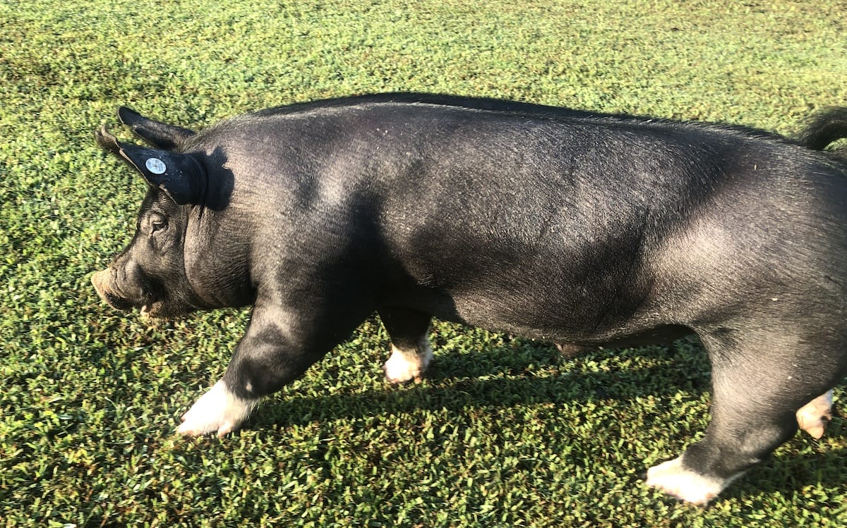 The hog arrived in the spring weighing about 40 pounds. He lived up to his “hoggishness” and by fair time in September, had grown to 240 pounds. Our 6-year-old gave him the name, “Happy Sniffers,” and we’ve called him “Happy” since. We dove in with love for the opportunity for the children, who learned so much about hogs and the labor that goes into raising one.