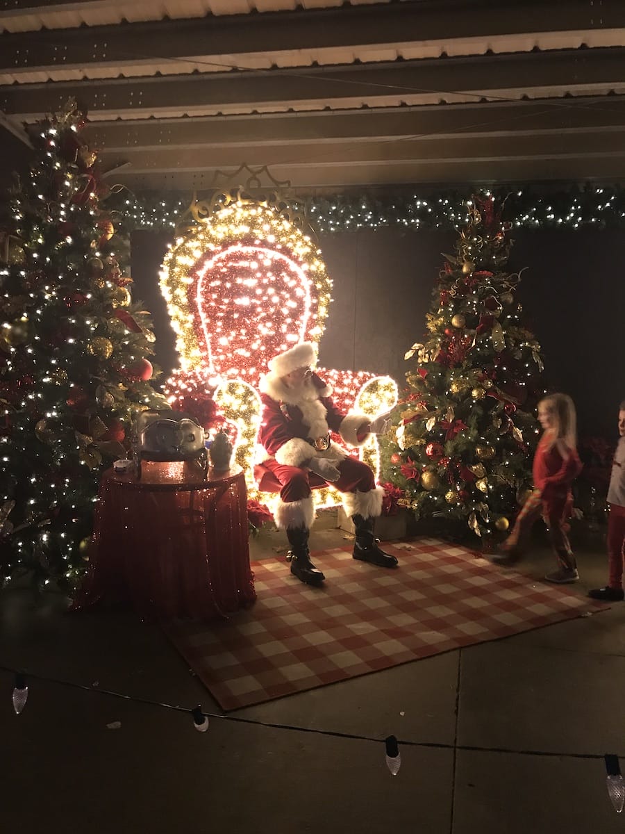 The display is designed to encourage participants to interact with different areas. Several parking lots along the trail provide the opportunity for you to get out and walk among the displays. Kids can participate in a scavenger hunt and mark certain pieces on the trail map for a free hot-cocoa at the concession stand. And of course, you won’t want to miss Santa, who is taking time out of his busy schedule to be there from 5-8:30 every night through December 23.