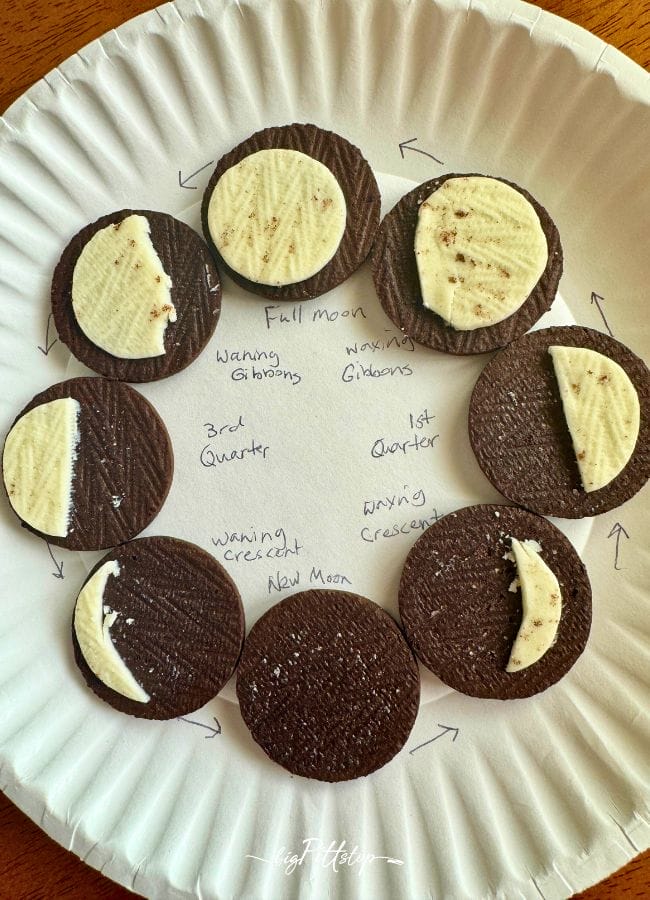 Use vanilla and chocolate sandwich cookies to make models of the moon phases – then eat your activity for a snack!