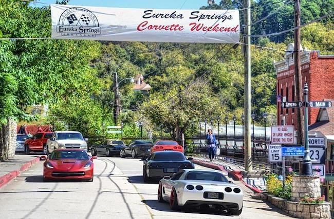 Since 1991, Corvette enthusiasts across the Midwest and beyond have gathered in Eureka Springs, Arkansas the first weekend of October to enjoy the beautiful autumn scenery and weather. The unique charm of the Eureka Springs area and just relaxing and having fun with hundreds of fellow Corvette fans is a draw for many. All Corvettes, modified, restored, original or daily driver, from all years are welcome. Head to Eureka Springs this weekend to enjoy corvette weekend in a beautiful setting!