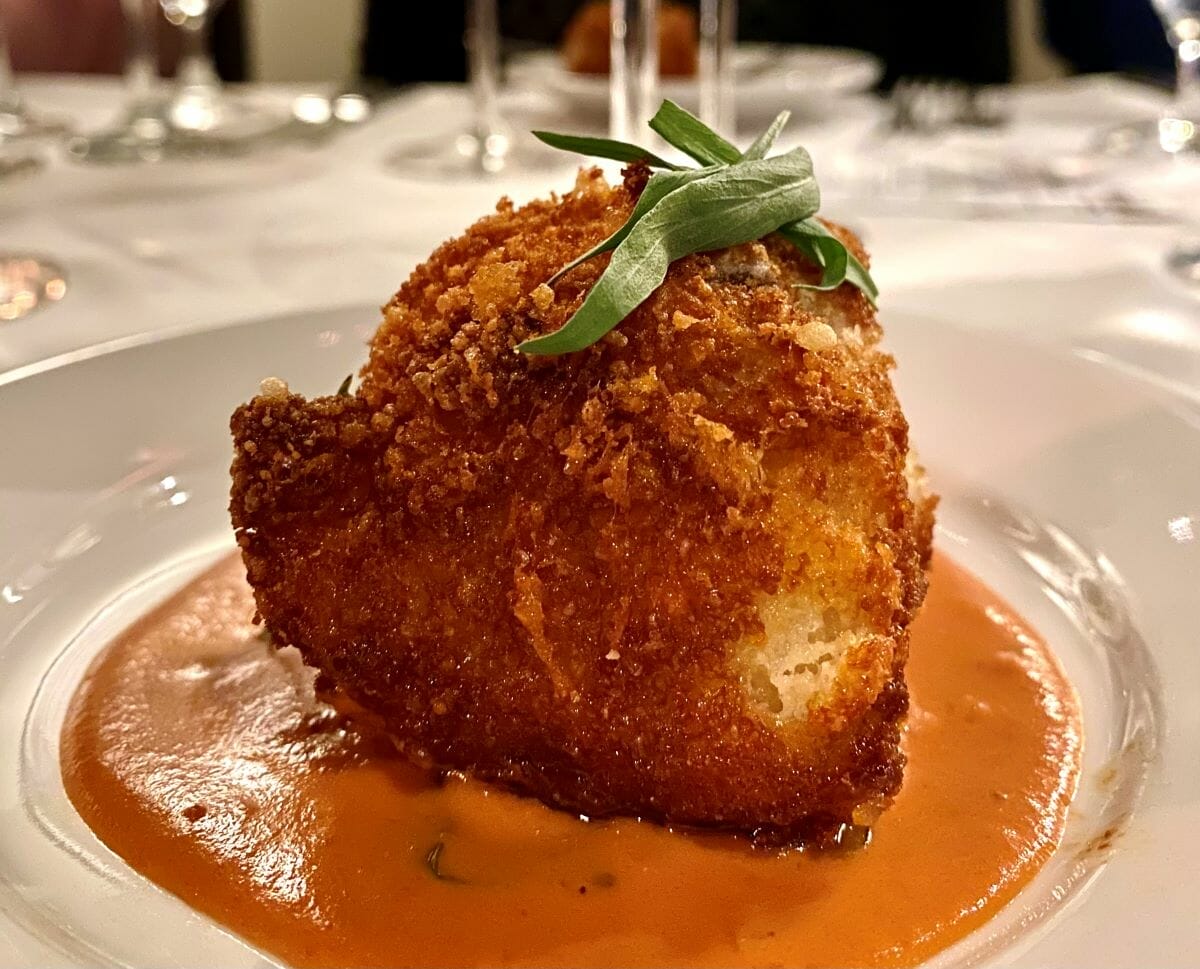 I thought the chilled shrimp amuse bouche was a perfect meal starter. One jumbo shrimp with a subtly sweet apple honey slaw awakened my palette, as did the crisp chardonnay pairing. It was exactly how I wanted to begin the meal and proved to be an ideal lead-in to my favorite course of the evening, the Sweet Pea & Bacon Arancini. Like most dinners of this nature, Allsopp’s was completely off menu. Diners are somewhat of guinea pigs, as the restaurant uses the opportunity to tests certain dishes on a group of foodies. If dish is well-received by the crowd, it might eventually land on the regular menu. Well, in my humble opinion, this arancini is one of those dishes. A ball of fried risotto with hints of bacon tends to be a crowd favorite, so here’s hoping the kitchen staff reads my plea and makes the arancini an Allsopp appetizer.