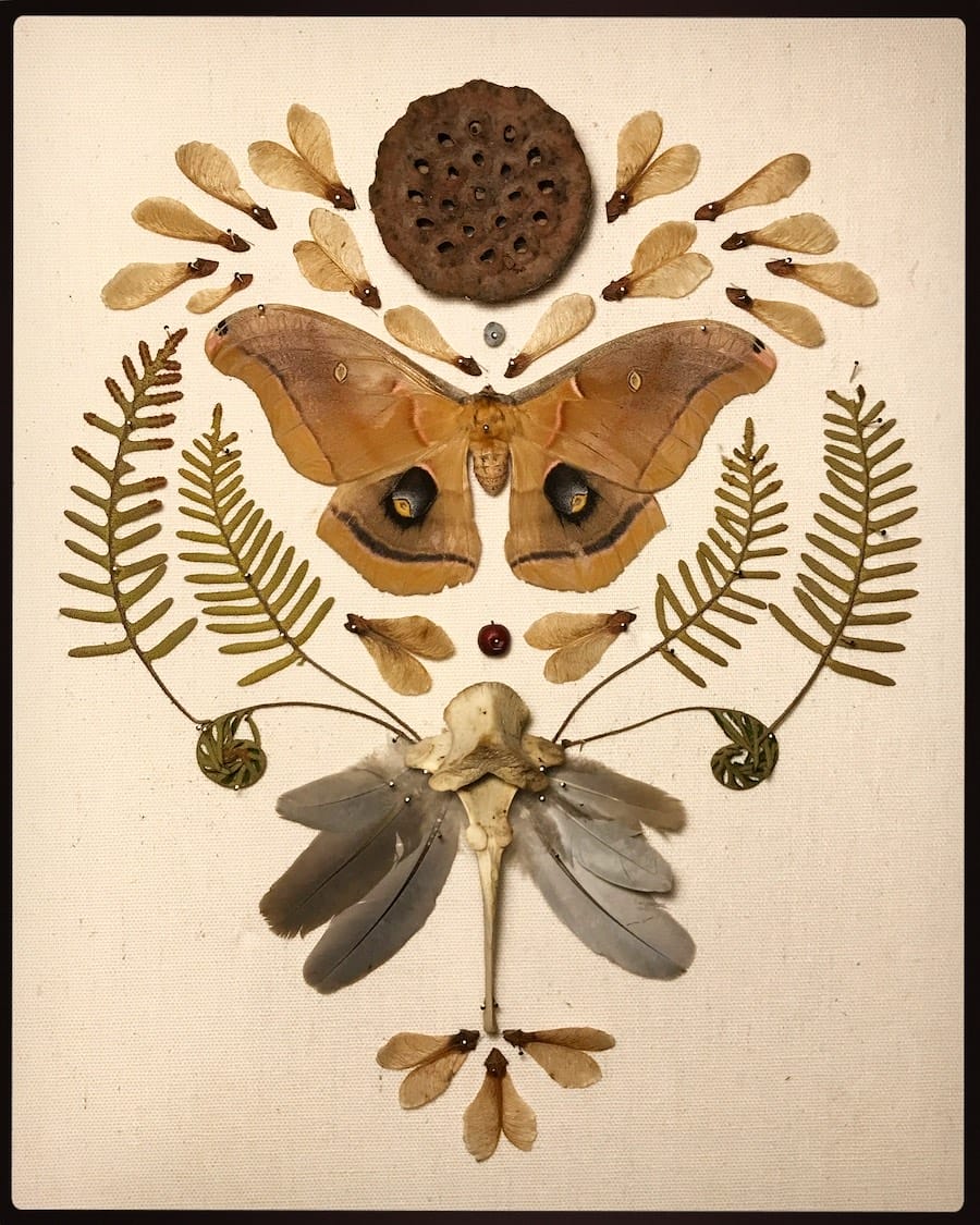 Pierce received a Fine Arts degree from UCA and is a fellow outdoor lover who spends her days off hiking, biking, camping and exploring everything the Arkansas outdoors (and beyond) has to offer. Like me, Pierce would collect natural treasures during her travels. Collected snail shells, pretty leaves, interesting seed pods, butterfly wings, cool rocks, pieces of lichen and moss, and mushrooms became part of carefully arranged jars and shadow boxes throughout her home. Pierce began to turn her foraged natural treasures into thoughtful and attractive art.
