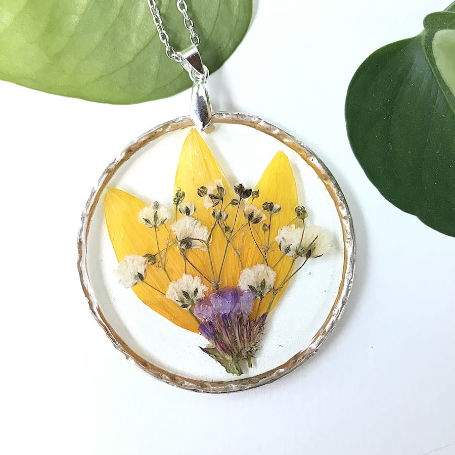 Pierce developed her preserved flora collection, which includes jewelry like earrings and pendants, wall art and suncatchers, and turned it into a full-time creative business in 2019. She also began honing the craft of bridal bouquet preservation which has really taken off.