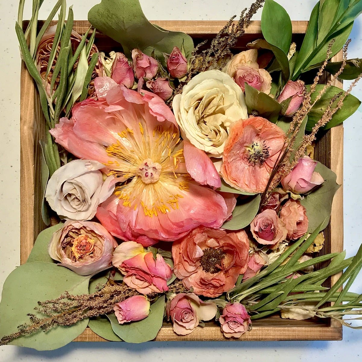 “I love the sentimental aspect of preserving wedding bouquets for brides. There is so much meaning and memories tied to the flowers and I feel honored to be able to preserve them and create beautiful heirlooms for their family to keep on enjoying. Each bouquet is unique, and I take great care to press and preserve the flowers and foliage so that they look great for display.”