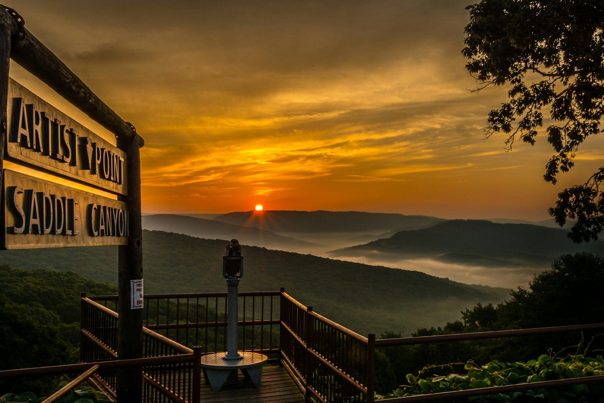 Sun rising over the Boston Mountains in Northwest Arkansas at Artist Point.