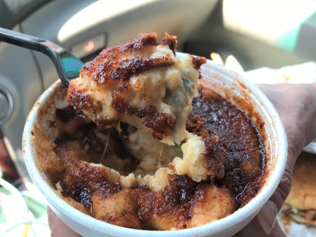 We had such a fun, family, parking lot lunch at Suttle’s, one filled with pulled pork and chopped beef sandwiches, pork ribs, sides of slaw, beans, potato salad, and the signature item, Road Hog Potatoes. These super cheesy smashed potatoes are topped off with a dry rub that will send your taste buds through the roof.
