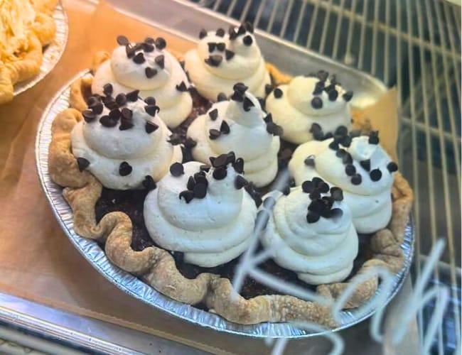 • Family Favorites: The signature Strawberry Crunch Pie is as beautiful as it is delicious, layered with fresh berries and a sweet, crumbly topping. The Coconut meringue Pie is a showstopper with its tall, perfectly browned peaks, while the Chocolate Cream Pie delivers that rich, silky texture pie lovers crave.