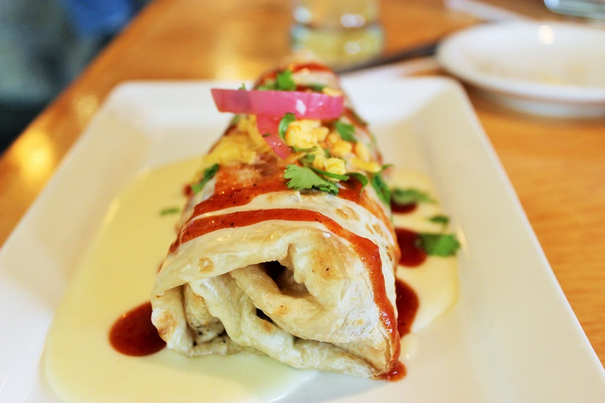 The restaurant has several tasty menu items, like a list of “starters” including the Baja Crab Cakes and the Triple Dipper, the latter of which consists of bowls of queso, salsa, and guacamole. Once you’re done with appetizers, graduate to the popular Cuban burrito, a flour tortilla stuffed with slow-smoked shredded pork and topped with house-made chipotle aioli, red cabbage/jicama slaw, avocado slices and fresco cheese. If burritos aren’t your thing, then order the Cuban as a taco, quesadilla or even as a low-carb option with no tortilla known as the naked burrito. Another popular option is the Pig Sooie Taco, which consists of smoked, shredded pork topped with barbecue sauce, cheddar cheese, slaw and pickled red onions.