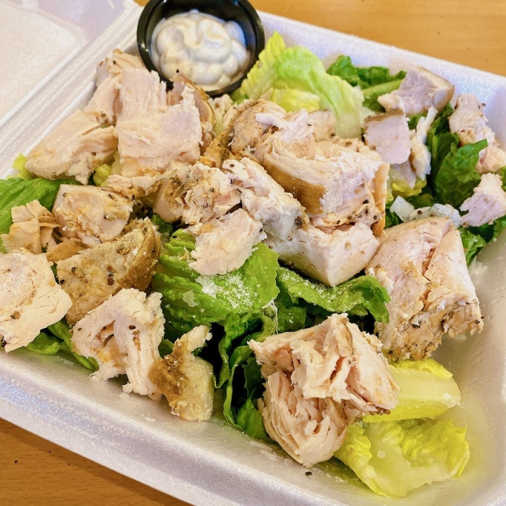 If you’re feeling a little more on the I-want-bbq-but-I-also-want-salad fence, I recommend a Caesar salad with smoked chicken and brown butter solids. Again, bring a friend. Servings are HUGE!