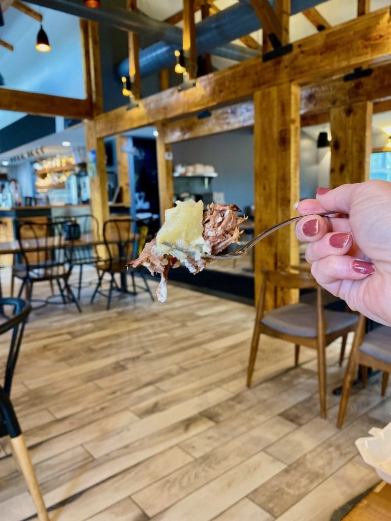 While I haven’t eaten through all the offerings, I recommend the Loaded Baked Potato chocked full of white cheddar, red onion, green onion, crema and Beach BBQ Sweet Sauce. Add the Smoked Beef Brisket and bring a friend. Servings are HUGE.