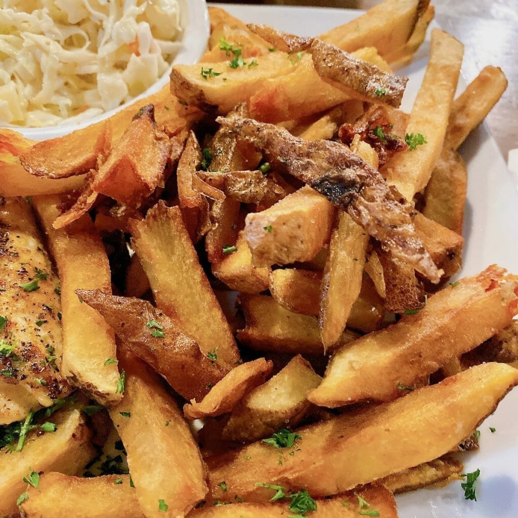 The menu also boasts a Catch of the Day with some seasonal options. Florida Grouper is flown in fresh throughout the week, but this latest visit had me eyeballing the seasonal Amberjack. Since you don’t see that every day, I went with blackened Amberjack with freshly cut fries and house pineapple slaw. It was both mild and flavorful!