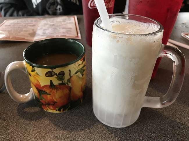One bite of the sandwich breaks loose the over-easy egg’s yolk, spilling the yellow liquid onto the hash browns. Snap off a bit of thick, slightly crispy, yet still bendable bacon and dip it into the pooling egg yolk. Take a sip of coffee from your mug or a swallow of milk from the frosty Miller Lite mug, look around at other diners, and just bask in the enjoyment of the moment. If you’re still hungry and looking to order something else, be sure to keep an eye on the clock.