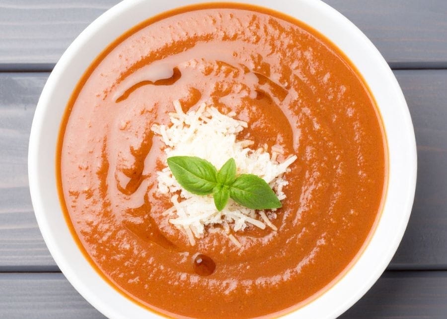 Two Sisters Cafe’s tomato basil soup is thick and hearty. It’s almost always available in their take-n-bake fridge, so it’s easy to pick up a container to bring home and serve with grilled cheese sandwiches.