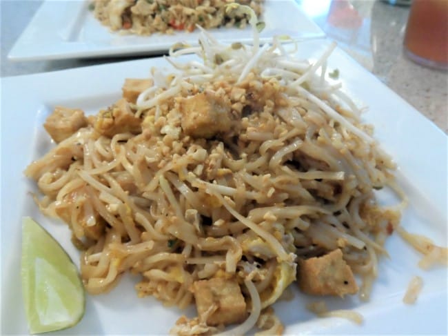 Some of the more popular entrées include the Red, Green, and Panama curry, Pad Thai, Basil Stir Fry, Spicy Beef Thai Salad, Lard Nar (a noodle dish), Pad Woon Sen (glass noodles), and Tom Kha and Tom Yum soups. The Mieng Kham appetizer, a seasonal offering made with betel leaf and toasted coconut, ginger, lime, and cashew nuts, is a huge hit, but so too are the fried spring rolls, steamed dumplings, pan-fried dumplings, and fried tofu. Just make sure to save room for the Mango Sweet Sticky Rice for dessert.