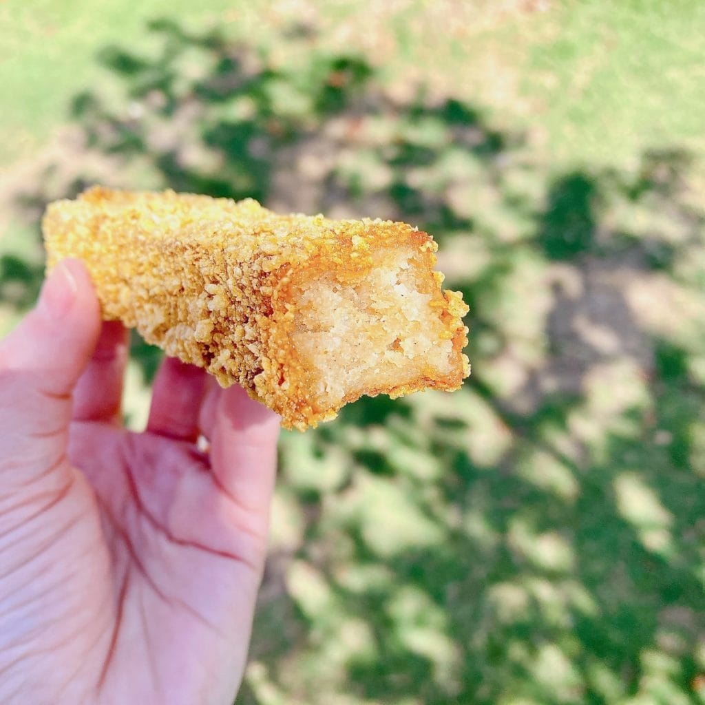 Here’s a kid-friendly treat you’ve got to try for the kid in you – French Toast Sticks! They turn the leftover biscuits into baked French Toast, cut them into sticks and roll them into cornflakes, popping them in the fryer. They were served with one-hundred-percent real maple syrup.