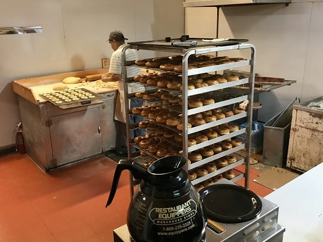 A plain glazed spudnut will run you 70 cents. Other slightly higher priced items include chocolate covered, lemon filled, strawberry filled and caramel iced spudnuts, along with cinnamon rolls, eclairs, and donut holes by the dozen. It’s a simple, no-frills menu, which is about what I expected.