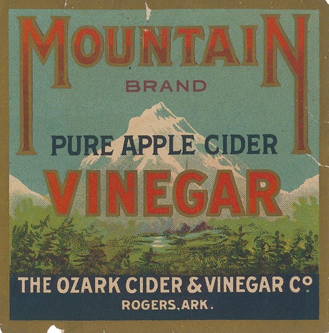 Many Arkansans may not realize our state once played a significant role in the production of apple cider vinegar. In the late 1800s and early 1900s, northwest Arkansas was one of the country’s top apple-growing regions, shipping boxcars of fruit across the nation. Benton County was nicknamed the “apple orchard of America” and had over 40,000 acres of apple trees. In addition to orchards and packing sheds, there were said to be more than fifty distilleries that produced cider, brandy and vinegar throughout northwest Arkansas, including several large factories in Rogers and Prairie Grove.