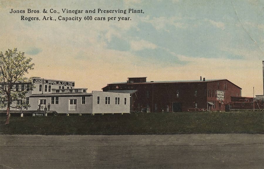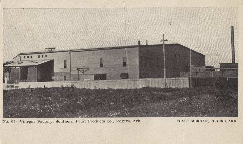 By the early 1900s, vinegar production had become more industrialized, especially in towns like Rogers and Prairie Grove, where sizable factories handled tons of local apples. Rogers Cider & Vinegar (also known as Ozark Cider and Vinegar and Jones Brothers Vinegar) opened in 1905 and was a leader in vinegar making for nearly 95 years. During its prime, the plant processed 700,000 bushels of apples and shipped out more than 500 railcar loads of vinegar per year.