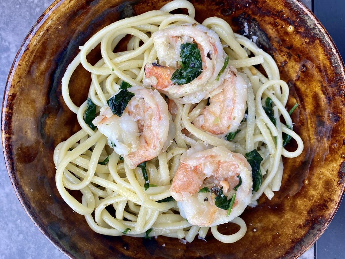 I absolutely love shrimp, but my wife has a shellfish allergy, so they rarely even enter the house. However, every now and then the craving to cook crustaceans is too overwhelming to resist, and when I stumble up a recipe like this Lemon Garlic Parmesan Shrimp Pasta, I plan accordingly and give it a go. That means making sure my wife is out of the house, like a recent afternoon when I cooked this recipe for me and the kids.