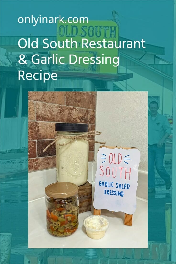 The Old South Restaurant has a famous garlic-flavored salad dressing. The true, real recipe is a secret and debated around town. Food writers often try to replicate it. Even my family connection could not get the exact recipe out of Zach. He said it was kind of close, but not exactly it. But it will have to do until they can make it again.