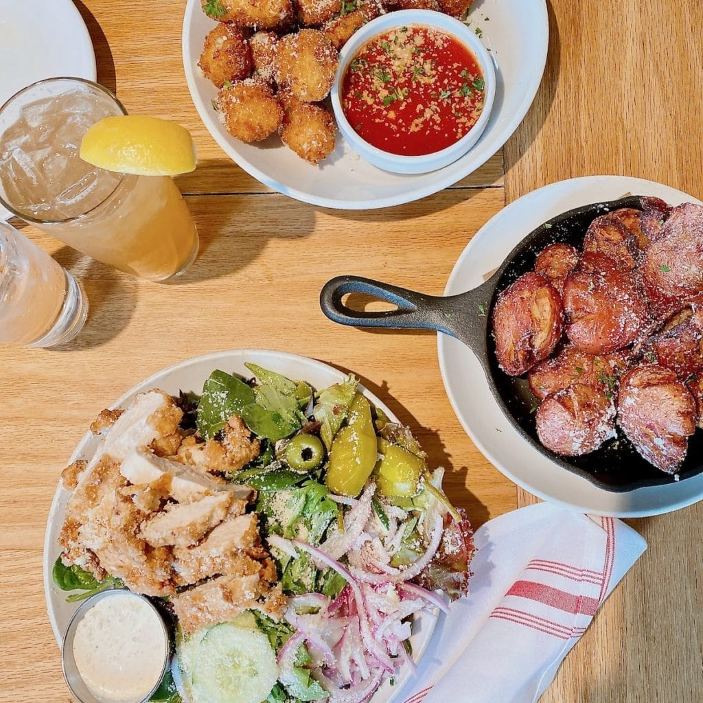 The wood-oven-fired pizzas are delicious, and I recommend starting with the Margherita for pure simplicity. I’m a sucker for the Pizzeria Salad, which is piled high with cucumbers, olive, red onions, parmesan, and salad peppers. I always order this with a side of chicken, although I always ask nicely if the chicken can be fried. Fried chicken will always win my heart.