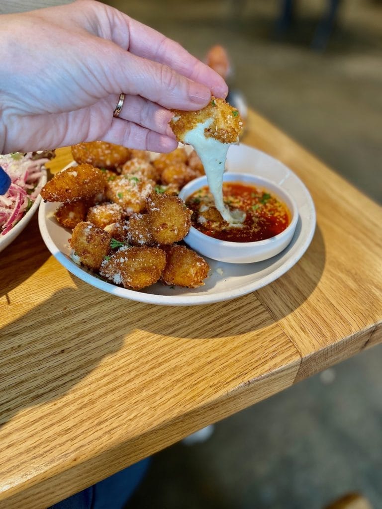 Even if you go to Oven & Tap for the appetizers, you’re going for the right reason. I will always get the Fried Mozz, fried mozzarella balls with parmesan, herbs, and red sauce. They’re delicious and hearty. I also recommend the side of Castelvetrano Olives, which are soft and buttery Sicilian olives.