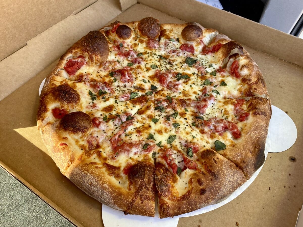 The restaurant’s menu also includes a variety of appetizers, salads, subs and even house-made brews. Those may very well be worth your time but going to SQZBX and not getting a pizza or two would be a mistake. There are 11 house pizzas, including Cheese, Pepperoni, Greek, Margherita, Veggie, Vegan Dream, Ham and Pineapple, Mushroom and Wide Load. The latter is SQZBX’s version of a supreme and comes loaded with meats and veggies. If none of those choices sound appealing, patrons can also build their own pizza with a mix-and-match of toppings. Sizes come in: Tiny (8-inch), Medium (13-inch), and Large (18-inch). For obvious reasons, I suggest going with the large, but folks with gluten intolerance will be interested in the gluten-free crust, which only comes in 13-inches.