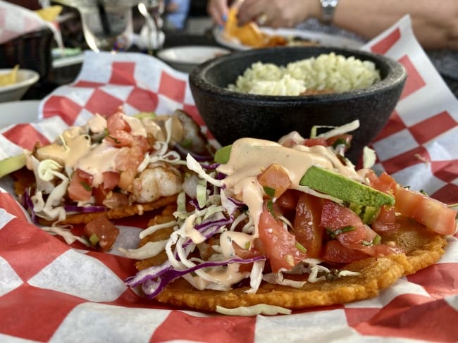 Growing up in Texas, my experience in the field of puffy tacos revolved around the soft, flour variety that would literally puff up after a quick fry job. Not these. Taco Mama’s corn tortilla version looks and tastes more like a thicker, denser tostada. However, unlike the rigid tostada shell, these puffy tacos had a subtle bend to them and proved to be the ideal vehicle to shovel succulent, grilled shrimp into my pie hole. The accompanying refried beans and cilantro lime rice both found their way onto each puffy taco, only enhancing the eating experience.
