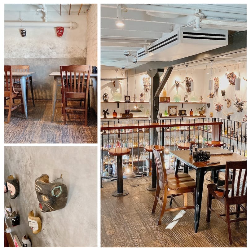 Yeyo’s Mezcaleria Y Taqueria walls are covered with Mexican folk art masks, and it has over two hundred specialty bottles of Mezcal, a distilled agave alcoholic drink.
