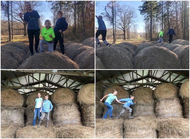 Arkansas farm kids are taking their PE class to a whole new level by working on their agility and cardiovascular health as they play tag on the hay bales.