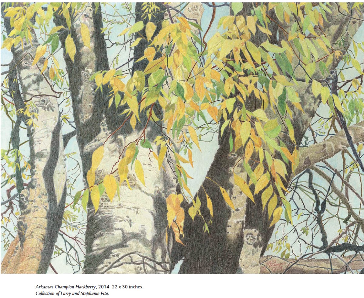 “Trees have always been a focus for my art from the very beginning, so, in 2007, when I found out about the Champion Tree list the Arkansas Forestry Commission keeps, I knew what I wanted to do,” she said. “Search out these trees, photograph them from all angles and go back to my studio and create portraits of these amazing trees.”