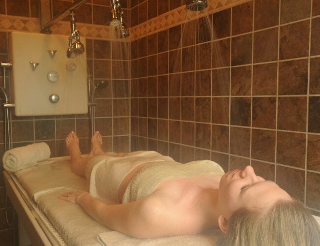 The Palace is 120 years old and the last remaining original Eureka Springs bathhouse. A traditional hot bath experience in a ceramic claw foot tub will detoxify and relieve seasonal sinuses while leaving your body stress free. But the eucalyptus steam bath in a eucalyptus drum room is the add-on needed for any session.