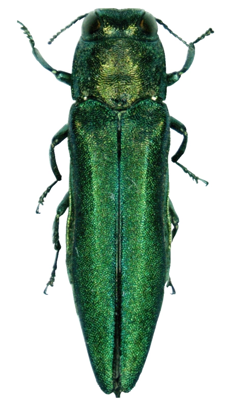 This metallic green beetle is quite beautiful with its emerald wings and jeweled iridescent body. First discovered in the US in 2002 just outside of Detroit, Michigan, experts believe the beetle came to the U.S. by way of wooden pallets and shipping crates that came from Asia.