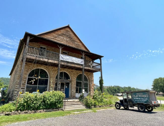 Today, the Stamps General Store is home to Osage Clayworks. The Bailey family, early settlers of the Alpena community, built the Stamps Store as a general store with meeting and lodging space for hotel guests on the second floor. Travelers, traders, the lawless, and moonshiners were among the greatest patrons of the store in the earliest 20th century, where a grocery and dry goods store shared the space with a town bank. The store is always a popular stop for those traveling to the Buffalo River to float or view elk or during the fall when shopgoers have come from the War Eagle craft fairs.