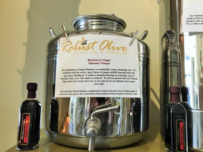 While I’m particularly fond of Blackberry Ginger Balsamic Vinegar, one thing is for certain; The Robust Olive has a bottle to match anyone’s taste buds. It’s just a matter of walking around the store and sampling the options, which is a ton of fun.