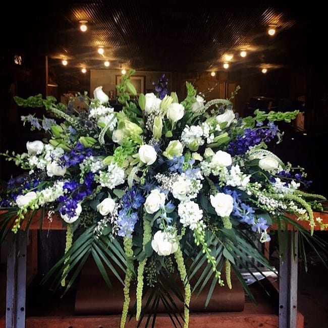 The first arrangement Rockin Roses sold was for a sweet sixteen birthday party. The arrangement featured hydrangeas and dahlias and was bright and sweet. Alman makes arrangements for anniversaries, celebrations, business displays and “just because.” When I talked to her, she was working on flowers for a wedding. She had been hired to create bouquets and boutonnieres, but ultimately also provided last-minute flowers for hair, decorated the cake with flowers and formed a trellis arrangement. It was her first wedding order, and Alman recalls she was almost as nervous as the bride as she fixed the flowers. Besides birthdays, weddings and other special event arrangements, Rockin Roses also makes bereavement and funeral arrangements, including oversized draping casket pieces. “These are the last gift the family gives their loved one,” Alman says as she explains their importance. She spends a lot of time talking with the family in advance to determine what arrangement is best suited to the individual being remembered.