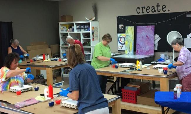 Once their doors opened the small store on Deer Street offered creative opportunities to the public that were not available anywhere else in town. Chelle didn’t just want her store to be a place where an artist could pick up a tube of paint or a canvas, but a hub of creative resources for anyone that was interested in exploring their artistic side. The more serious artists get a lot of use out of the gallery space and the creative work space offers an outlet for class creation. Those wishing to learn more benefit from a collection of weekly classes and monthly workshops that cater to a variety of skill levels.