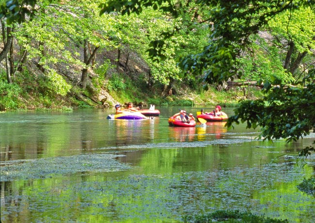 Spring River — Mammoth Spring/Hardy — The Spring River is one of the most popular floating rivers in the state. Families have been kayaking, canoeing and tubing the Spring River for years. Surrounded by hardwood forests and some bluffs, the cool, clear spring-fed water makes the river a popular spot for fly fishing. To book an excursion visit any of these locations: Riverside Resort, Spring River Canoe Club, Many Islands Camp and Canoe, Spring River Camp and Canoe, or River Wilderness Sports.