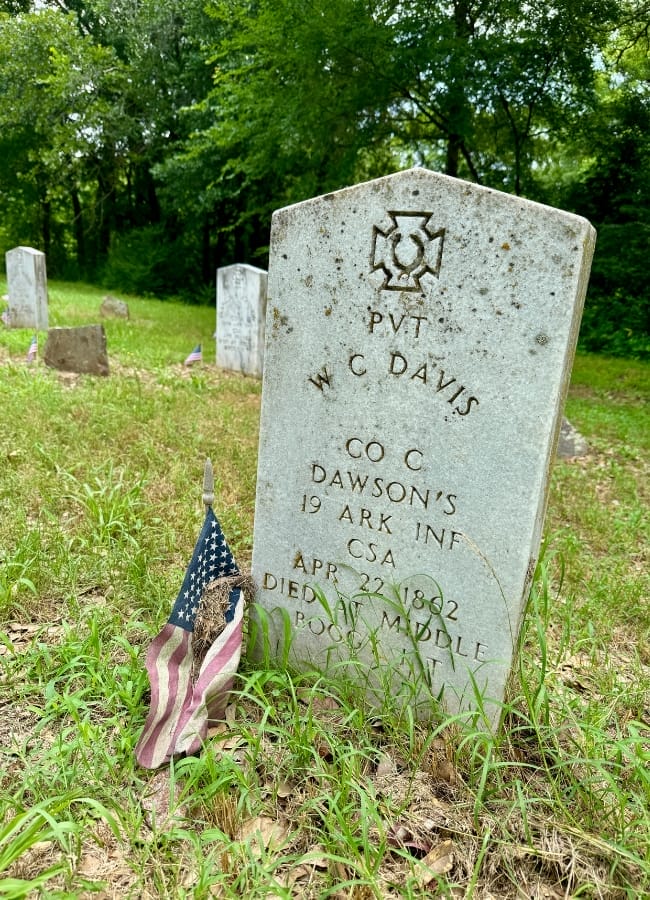 More than 1,500 Confederate soldiers are buried here after dying from diseases at a nearby military camp in 1862. Local school groups and the Cabot ROTC work to maintain the historic cemetery. The uniform white markers line up in neat rows across a shaded hillside in this all-Confederate graveyard, a quiet reminder of the cost of war.