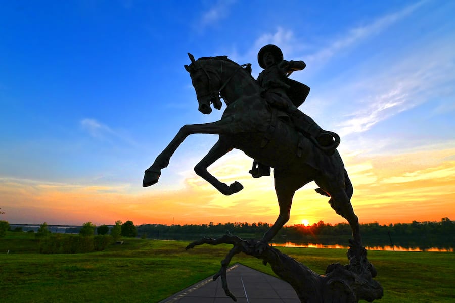 The U.S. Marshals Museum opened in 2023 and is dedicated to the history and work of the U.S. Marshals Service, the oldest federal law enforcement agency in the United States. The sunset provides a beautiful backdrop for the silhouetted Lighthorse statue on the museum grounds.