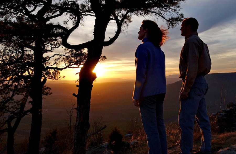 Mount Nebo’s Sunset Point is a scenic overlook offering breathtaking views of the Arkansas River Valley and surrounding Ozark Mountains. You can hike or drive to reach the point, making it a great option for sightseers of all ability levels.